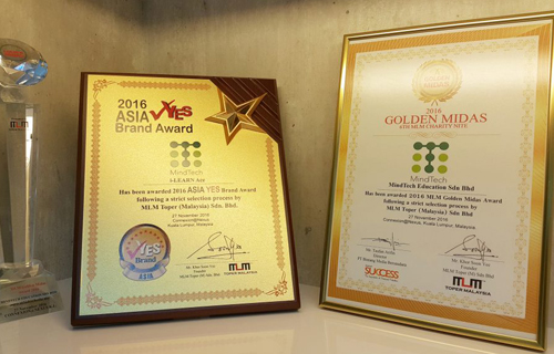 MindTech Education and i-LEARN Ace won the 2016 MLM Golden Midas Award and 2016 YES Brand Award